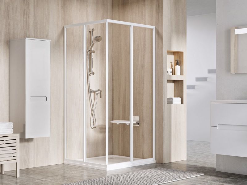 Supernova sarok zuhanykabin. Az üveget RAVAK AntiCalc® védőréteg védi. Tolóajtós nyitórendszer.