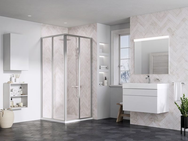 Supernova sarok zuhanykabin. Az üveget RAVAK AntiCalc® védőréteg védi.