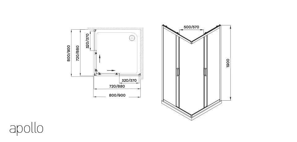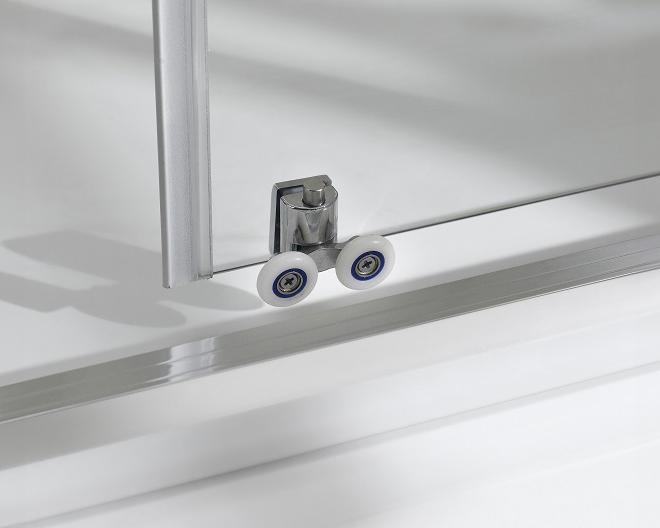 A rejtett, dupla görgőkkel szerelt tolóajtók stabilitást és időtállóságot kölcsönöznek az Apollo zuhanykabinnak.