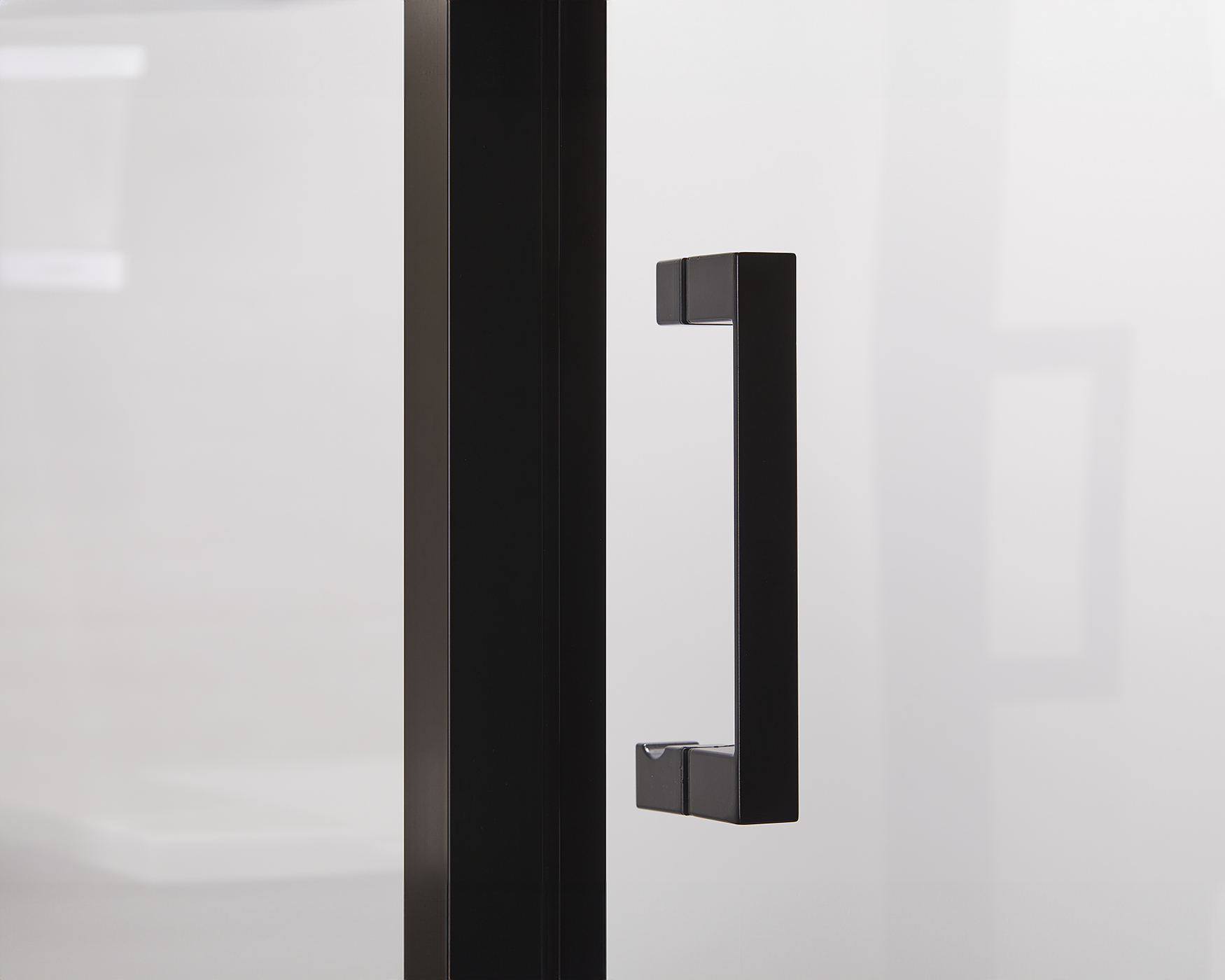•  matt fekete acél fogantyúk és tartókonzol az ajtó felett