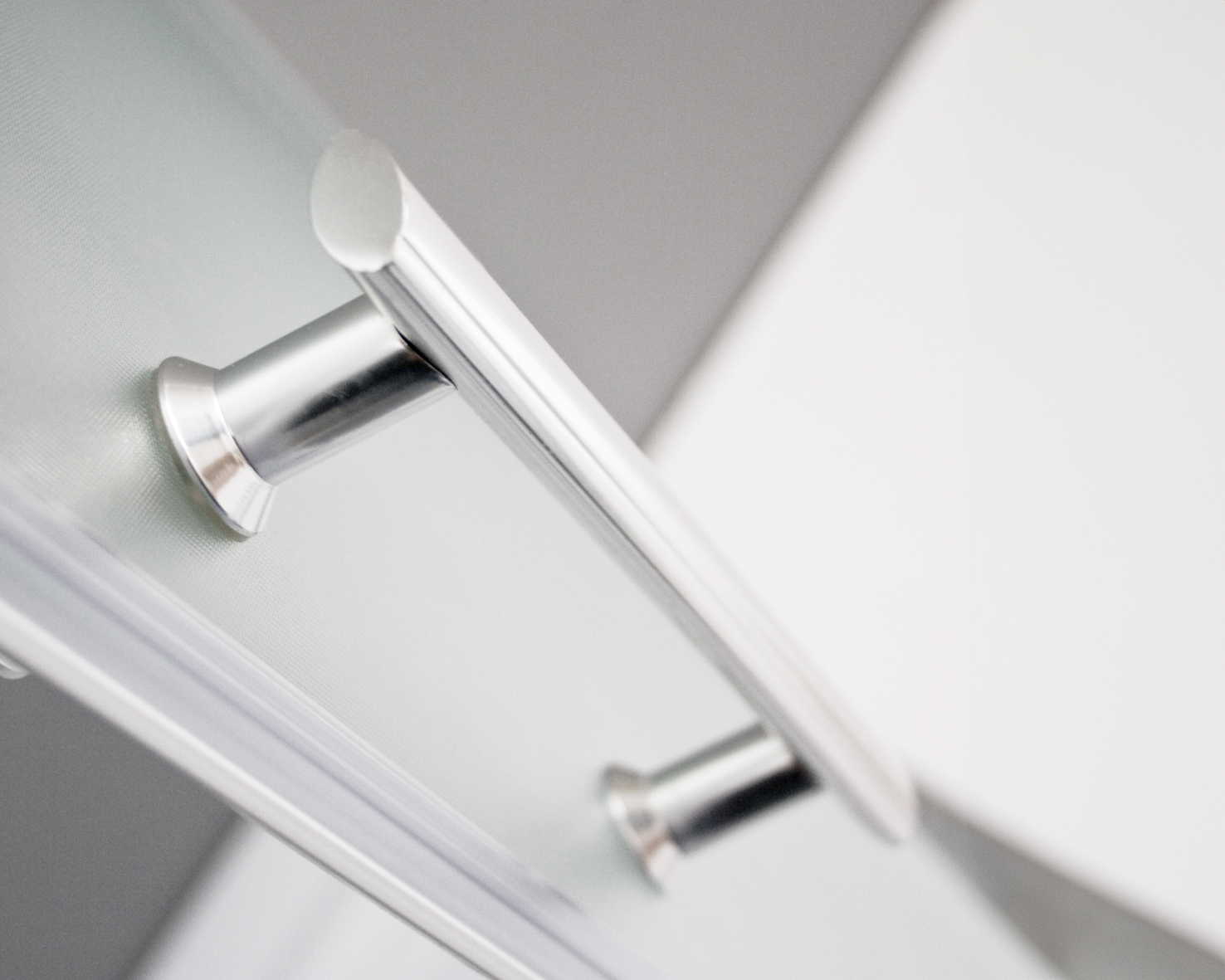 Íves, keretes, görgős zuhanykabin 4 mm Matt Glass biztonsági üveggel.