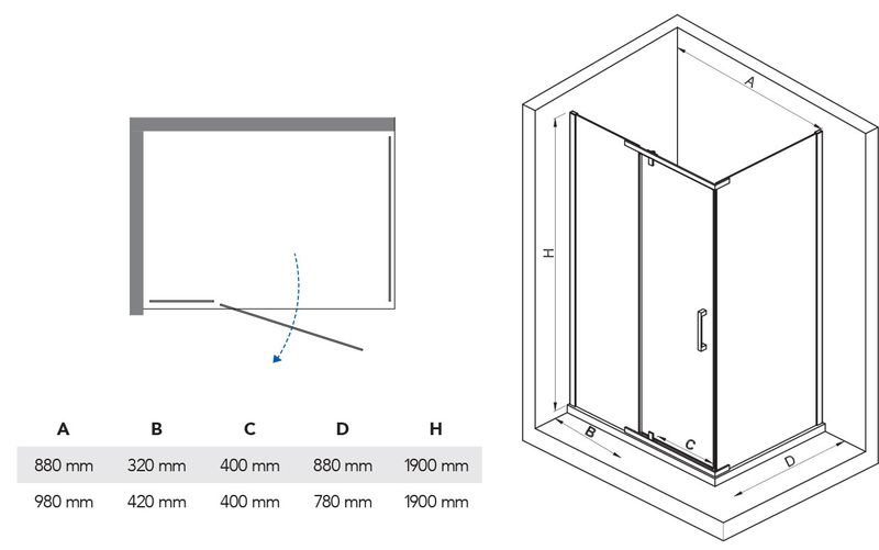 Niagara Carol 90×90 zuhanykabin szögletes, nyílóajtós