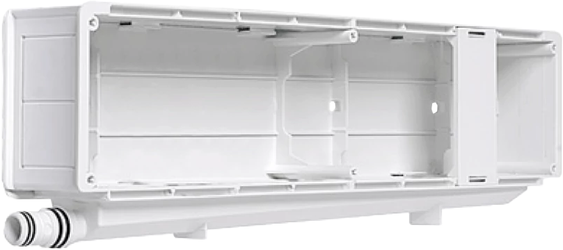 Vízszintes klíma szerelődoboz, variálható kondenzvíz kivezetéssel.