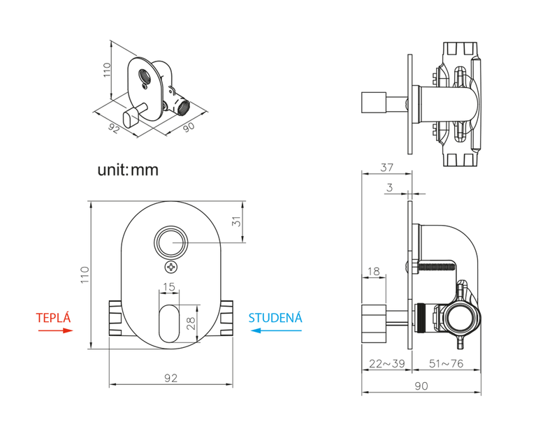 Sapho falba süllyesztett bidécsaptelep hideg/meleg vizes bekötéshez, króm