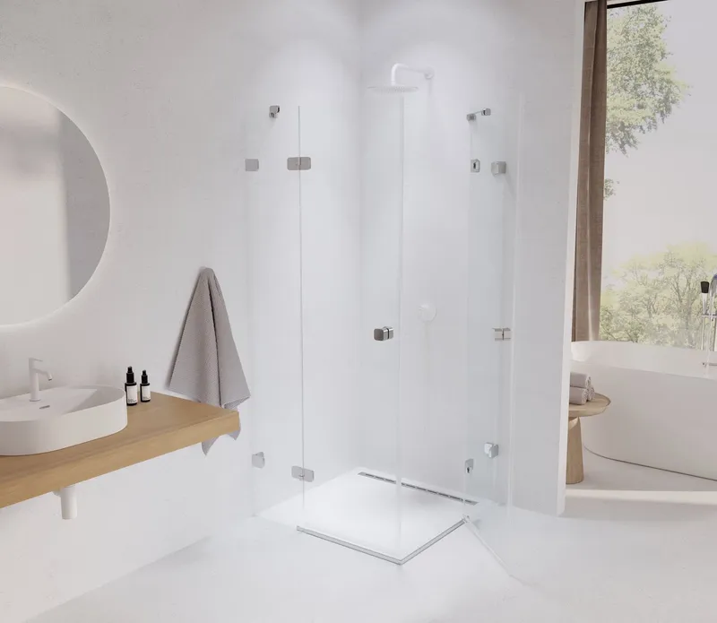 A BSRV4 csomagban két darab fix üvegfal, két zuhanyajtó, vízvető, fix profilok és mágnesprofilok találhatók.