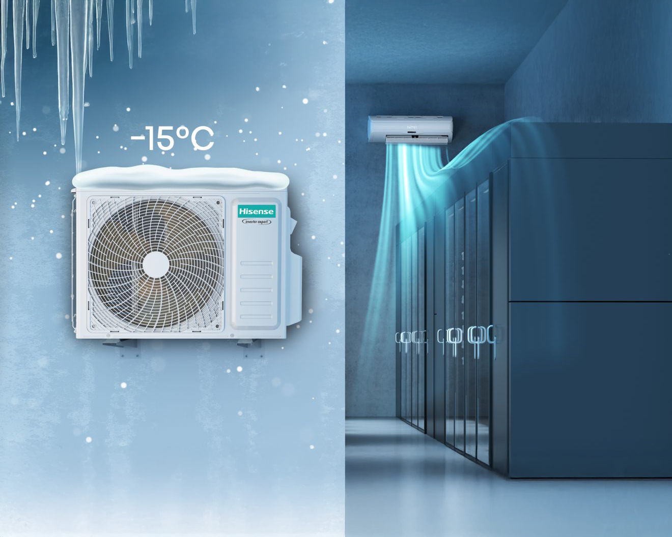 Több helység klímatizálása egy kültéri egységgel. Szabadon variálhatók a beltéri egységek 5 kW teljesítményig.