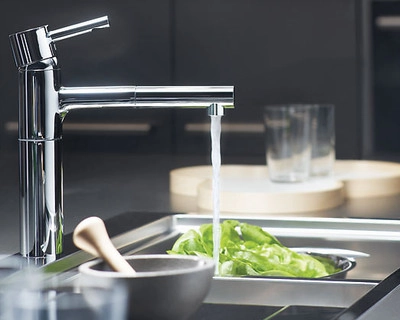 Grohe Essence mosogató csaptelep. GROHE SilkMove® 35 mm-es kerámiabetét. Állítható mennyiségkorlátozó. Elfordítható kifolyócső. Gyöngyöztető. Flexibilis csatlakozótömlők. Gyorsszerelő rendszer GROHE StarLight®.