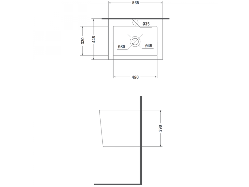 Könnyen tisztítható, beépíthető kerámia mosdó túlfolyóval.