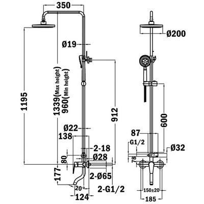 Mofém Zenit Black zuhanyrendszer alsó kifolyócsővel