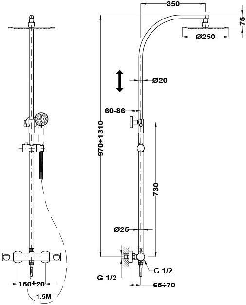 Méret: 970-1310 mm