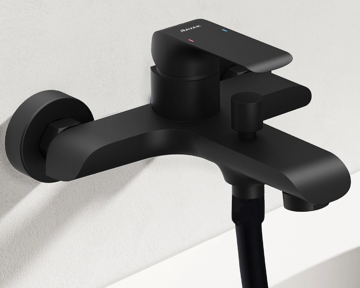 Ravak Flat álló kádtöltő csaptelep, zuhanyszett nélkül, fekete