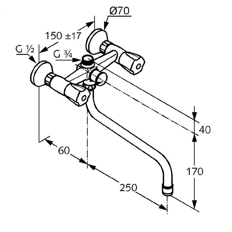 Kludi Standard spezial 250 fali kádtöltő- és zuhanycsaptelep, zuhanygarnitúra nélkül