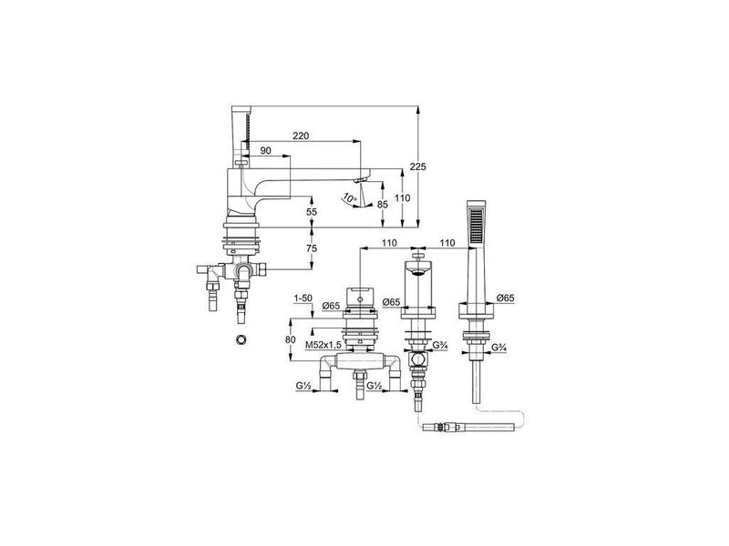 Kludi Zenta Sl kádperemre szerelhető kádtöltő- és zuhany csaptelep