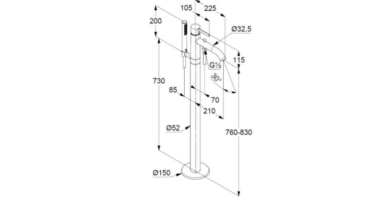 KLUDI-BOZZ kádtöltő- és zuhanycsap teli fogantyús, álló szerelés szabadon álló kádakhoz