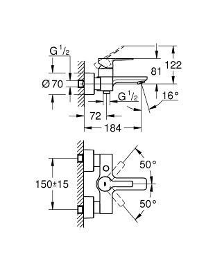 Grohe Lineare kádcsaptelep, fali kivitel, fém fogantyú