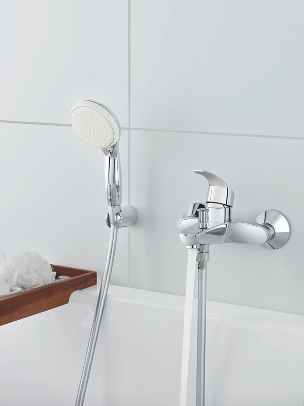 Grohe Eurosmart kádcsaptelep zuhanyszettel, fali kivitel, fém fogantyúval