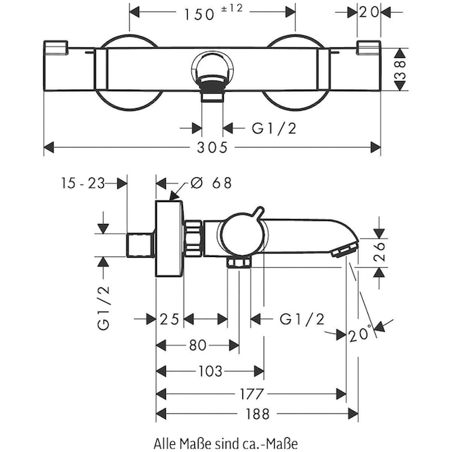 Hansgrohe Ecostat Comfort fali, termosztátos kádtöltő- és zuhany csaptelep, zuhanyszett nélkül
