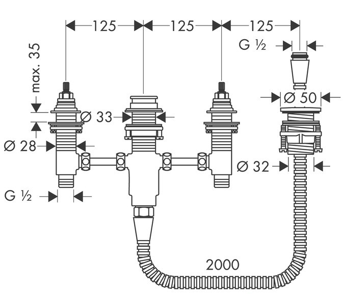 Hansgrohe Alaptest 4-lyukú peremre szerelhető kádtöltő csaptelephez