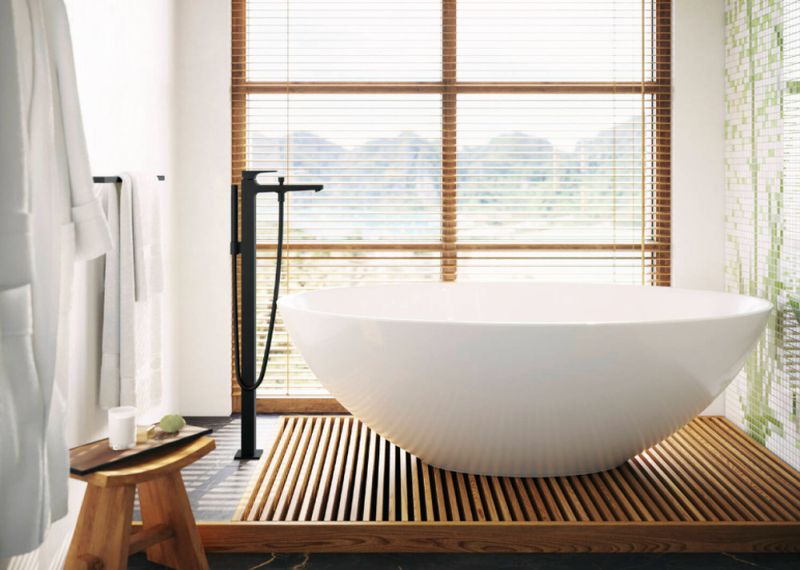 Hansgrohe Metropol padlón álló kádtöltő- és zuhany csaptelep, matt fekete