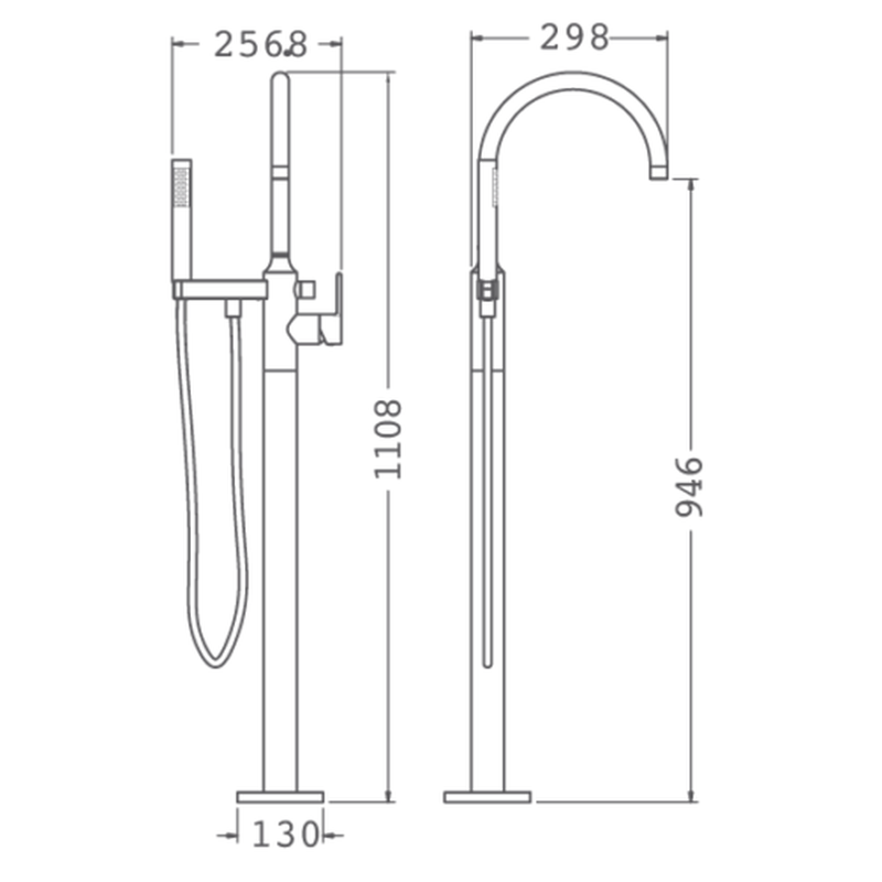 Króm színű, minimalista dizájn csaptelep, szabadonálló fürdőkádakhoz tervezve.