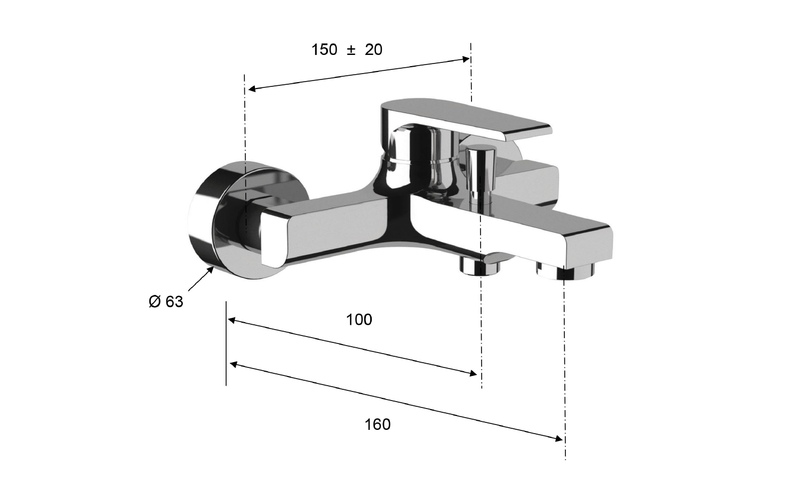 Sapho KAI fali kádtöltő csaptelep,zuhanyszett nélkül,matt fekete KA10/15