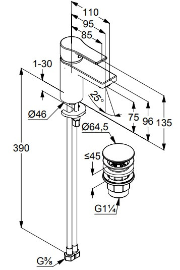 Kludi Zenta SL 75 egykaros mosdó csaptelep, Push-Open leeresztővel