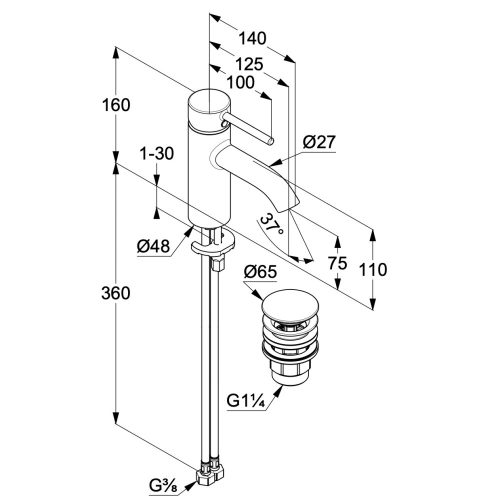 Kludi Bozz 75 egykaros mosdó csaptelep, Push-Open leeresztővel, matt fekete