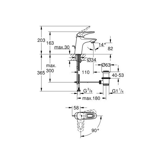 Grohe Eurostyle egylyukas kivitel lyukas fém fogantyúval