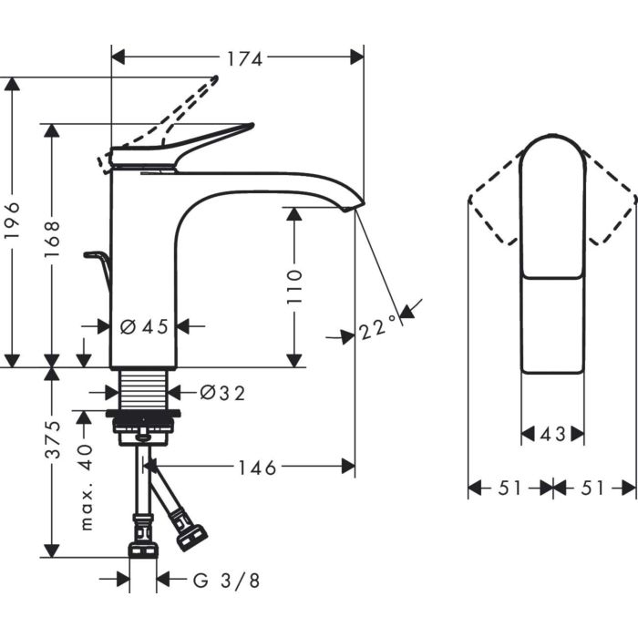 A Vivenis dizájn időtlen eleganciája lapos, ergonomikus karjával teljessé teszi a kellemes fürdőszobai hangulatot.