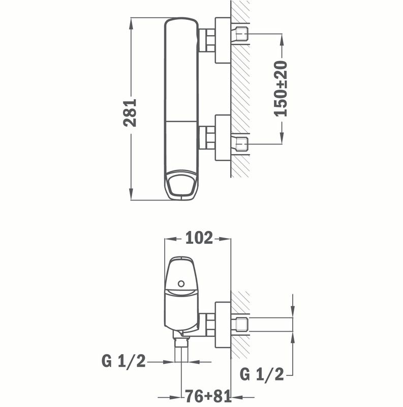 Zuhany csaptelep, minimalista kialakítással.