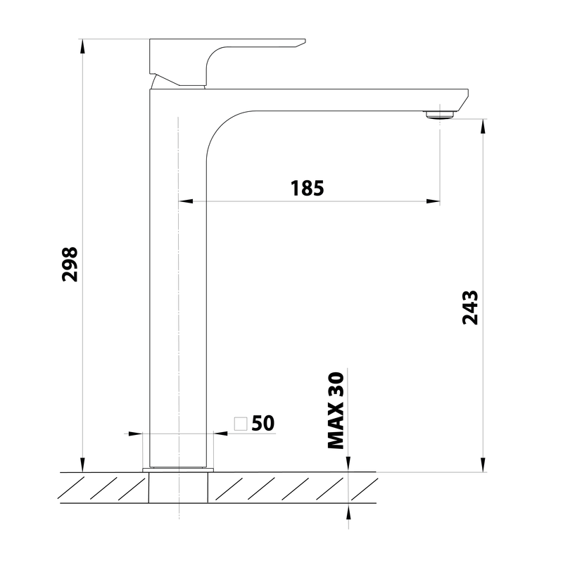 Csaptelep test magassága (zárt állapotnál): 29,8 cm