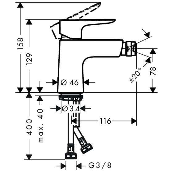 Hansgrohe Talis E egykaros bidécsaptelep, Push-Open lefolyógarnitúraával