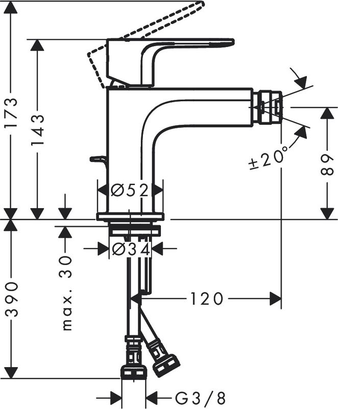 Hansgrohe Rebris E egykaros bidé csaptelep, fém automata lefolyógarnitúrával, króm