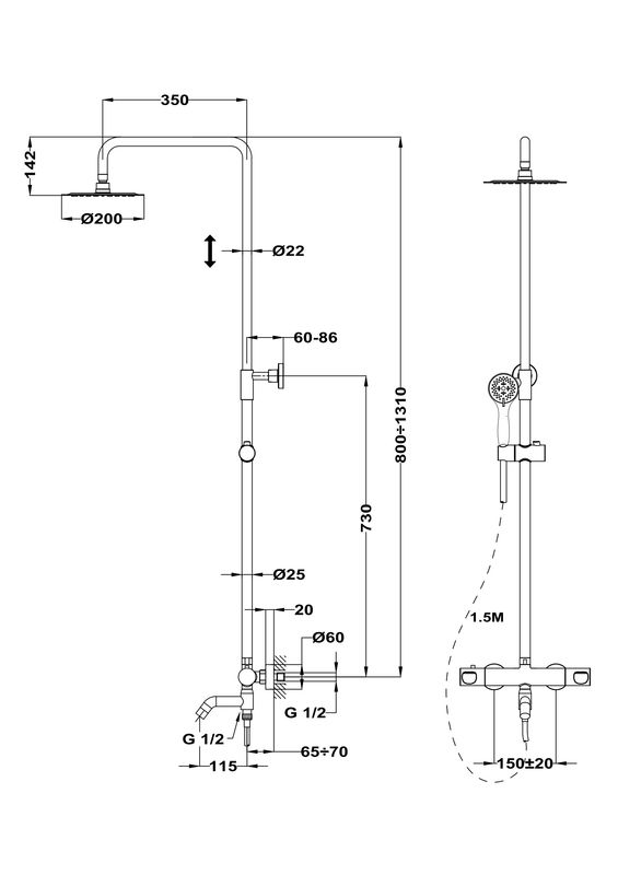 Teka Manacor Termosztátos zuhanyrendszer forgatható kifolyócsővel, króm