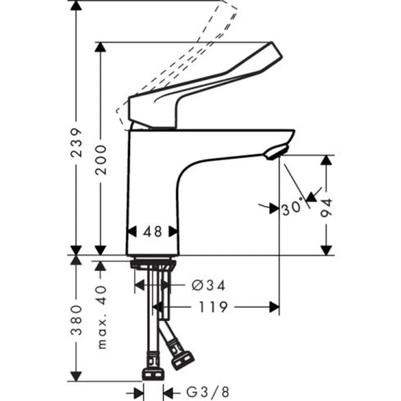 Hansgrohe Focus Care Egykaros orvosi mosdó csaptelep 100 extra hosszú fogantyúval, lefolyó-garnitúra nélkül