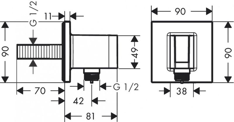 Hansgrohe FixFit Porter E fali tömlőcsatlakozás zuhanytartóval, szögletes, szálcsiszolt bronz