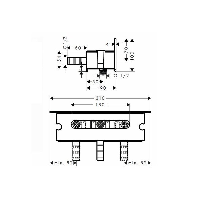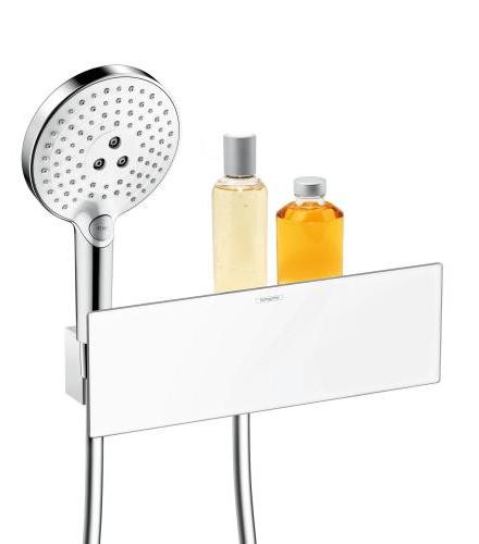 Hansgrohe FixFit 300 beépített zuhanytartóval, tömlőcsatlakozóval, polccal, fehér króm
