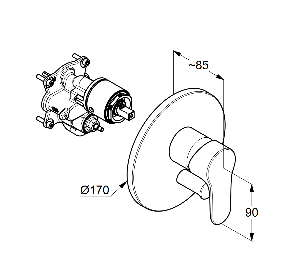Kludi Objekta falsík alatti egykaros kád/zuhanycsaptelep falon kívüli készlet szabályzóegységgel,