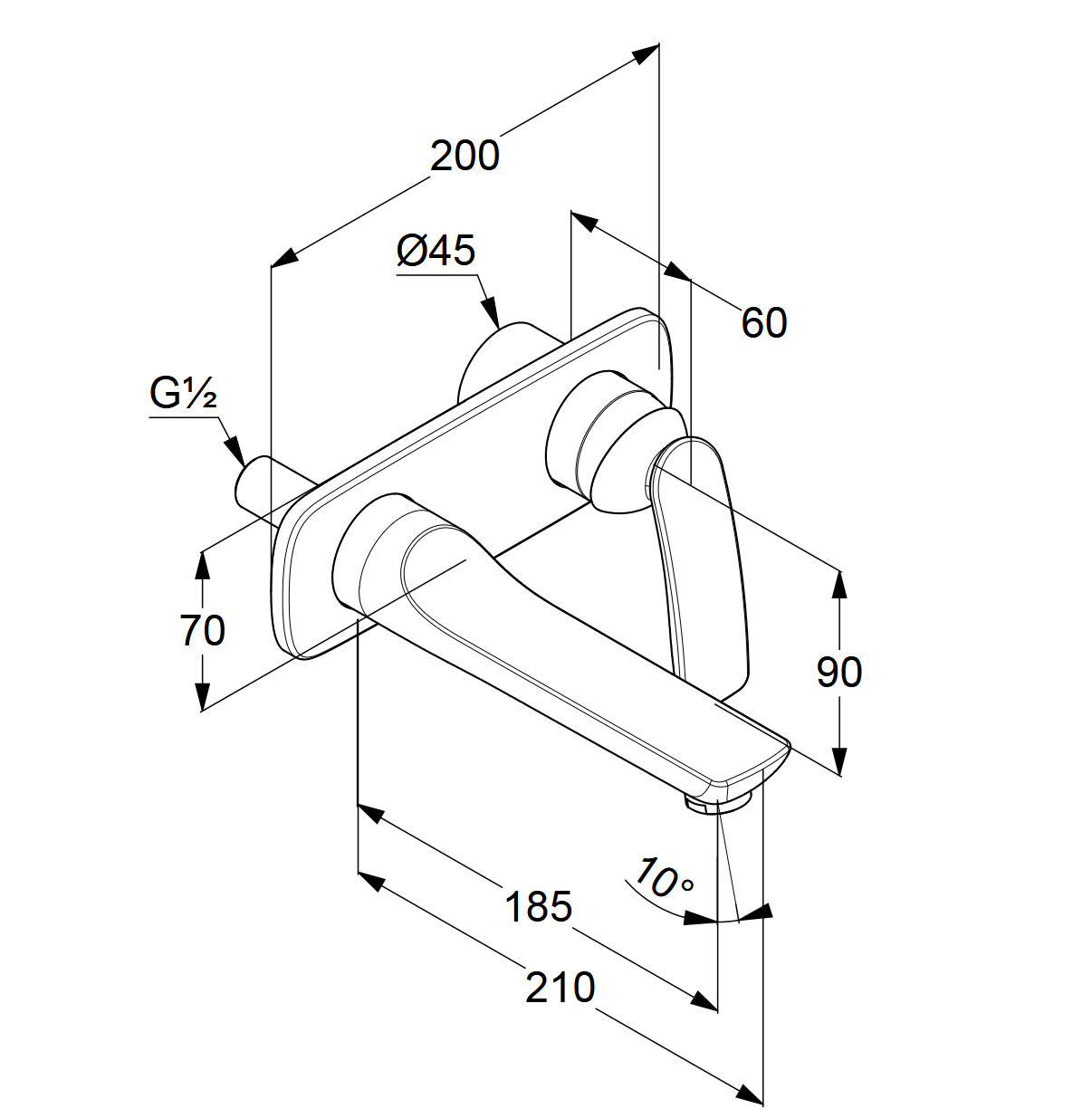 Fali kifolyó benyúlása: 185 mm