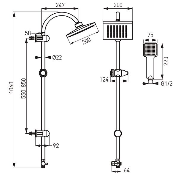 kézizuhany: 1 funkciós