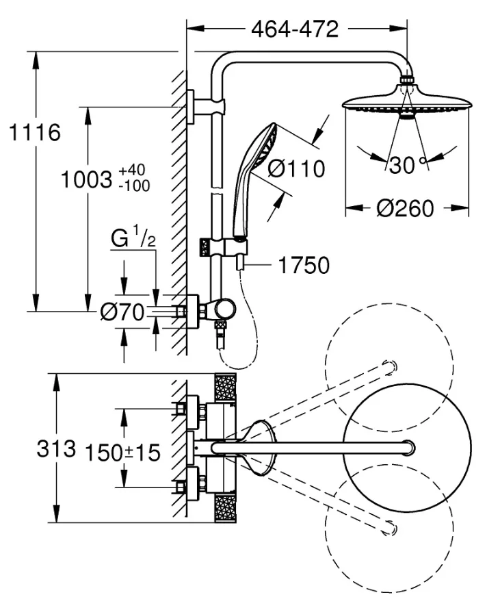 Grohe Euphoria 260 zuhanyrendszer termosztátos csapteleppel