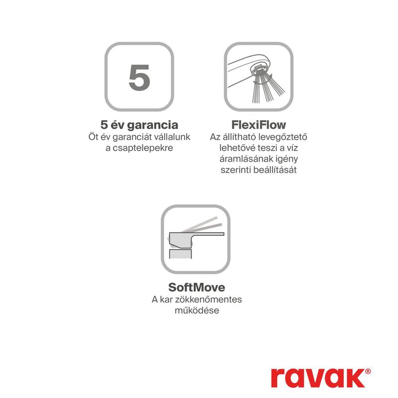 és a Ravak egyéb tartozékaival. A külső tisztításhoz javasoljuk a Ravak Cleaner Chrome tisztítószert.