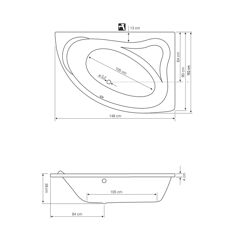 Sapho Orava fürdőkád, láb nélkül, jobbos, 150x90x38