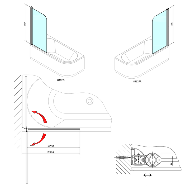 Sapho Spera kádparaván csiszolt alumínium kerettel 650mm