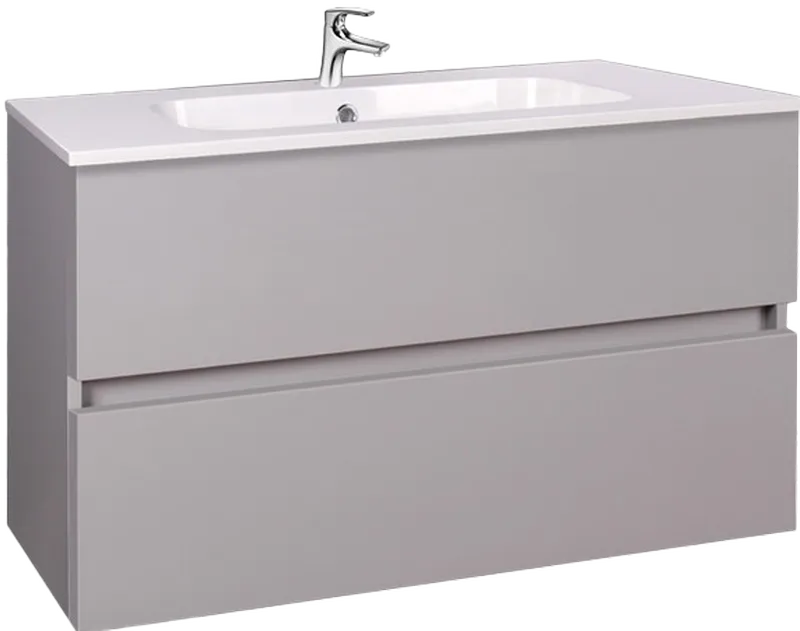 A világosszürke felületű bútor üde színfolt lesz fürdőszobájában, bátran kombinálhatja akár fehér vagy fekete elemekkel.