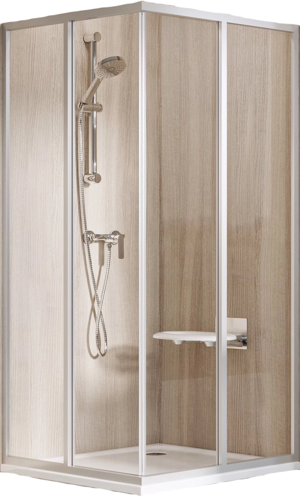 A zuhanykabin a fürdőszoba lecsempézett sarkába RAVAK Aneta, Angela, Perseus, Perseus Pro, Perseus Pro Flat, Perseus Pro Chrome, Gigant Pro, Gigant Pro Flat, Gigant Pro Chrome zuhanytálcákra vagy közvetlenül a zuhanyfolyókával vagy padlóösszefolyóval rendelkező lecsempézett padlóra telepíthető.