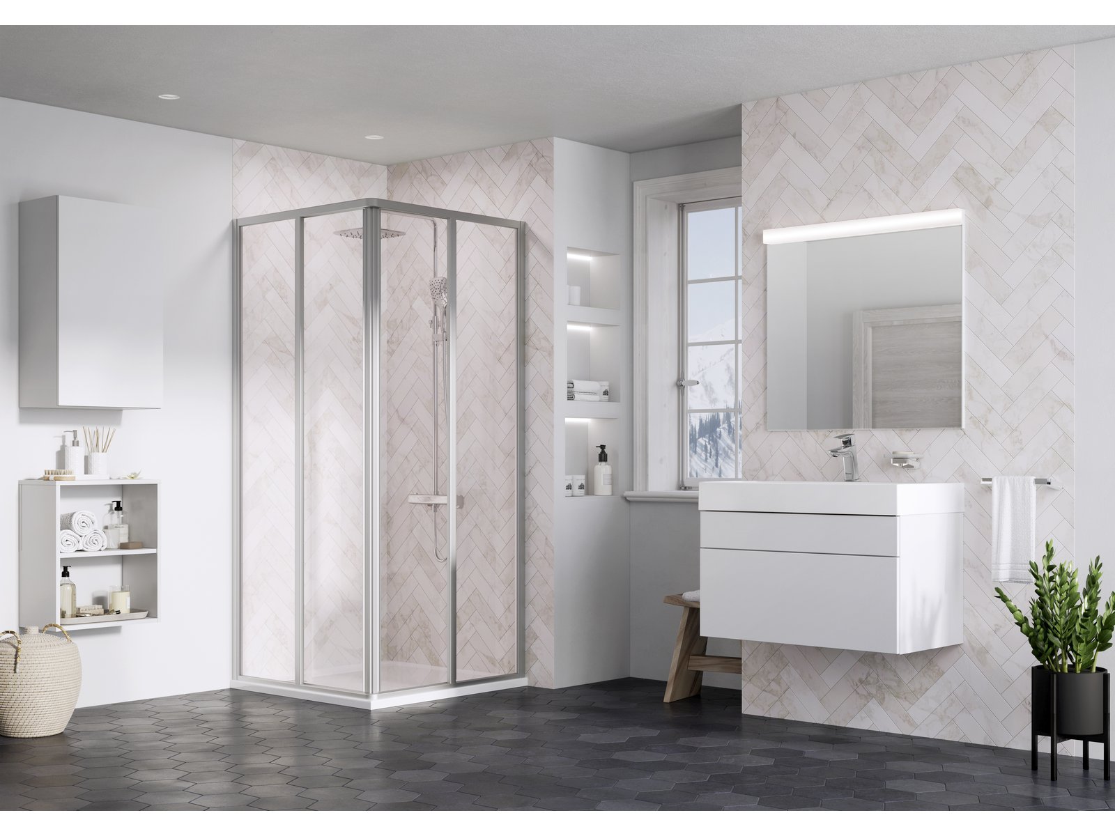 Egy teljes zuhanykabin kialakításához két darab SRV2-S tolóajtó szükséges. Mindkét rész különböző méretének kombinációjával négyzet vagy téglalap alapú zuhanykabint alakíthatunk ki (pl.: 75 x 90 cm, 90 x 90 cm, 80 x 100 cm és így tovább).