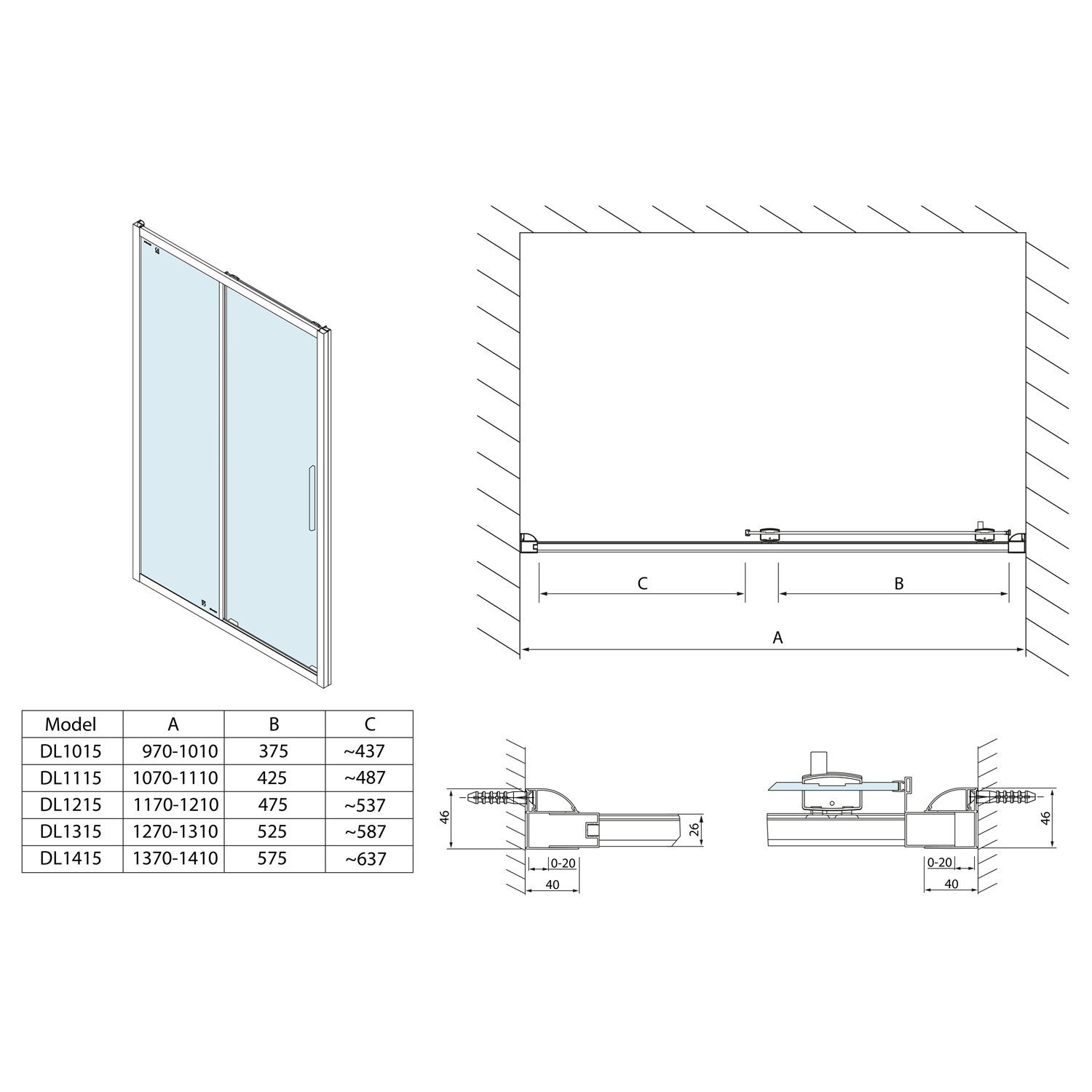 Üvegvastagság rögzített rész 6 mm, csúszó rész 8 mm