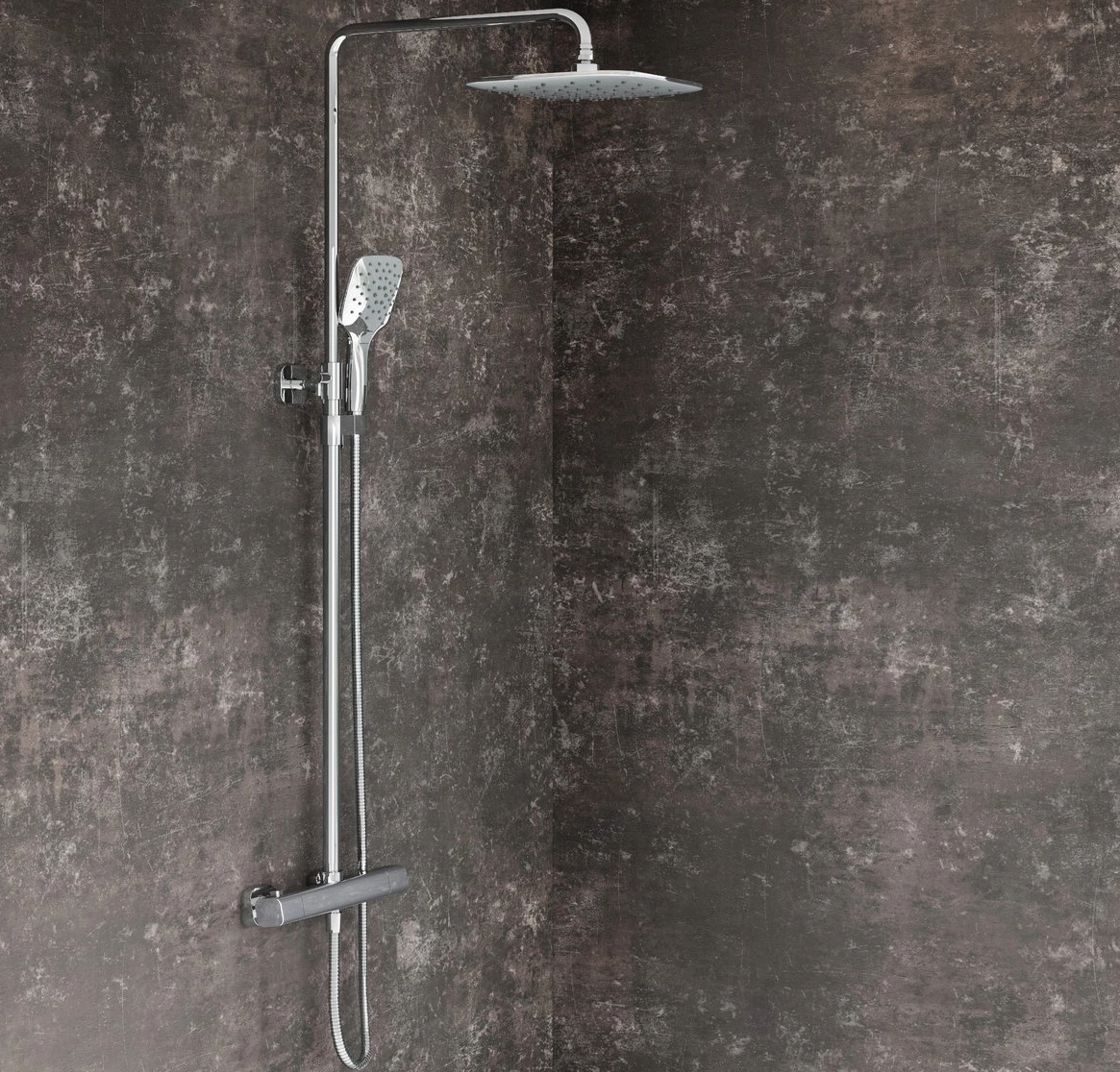 10° Free termosztatikus, csúszó zuhanyoszlop zuhanykészlettel. Króm fényes kivitelben.