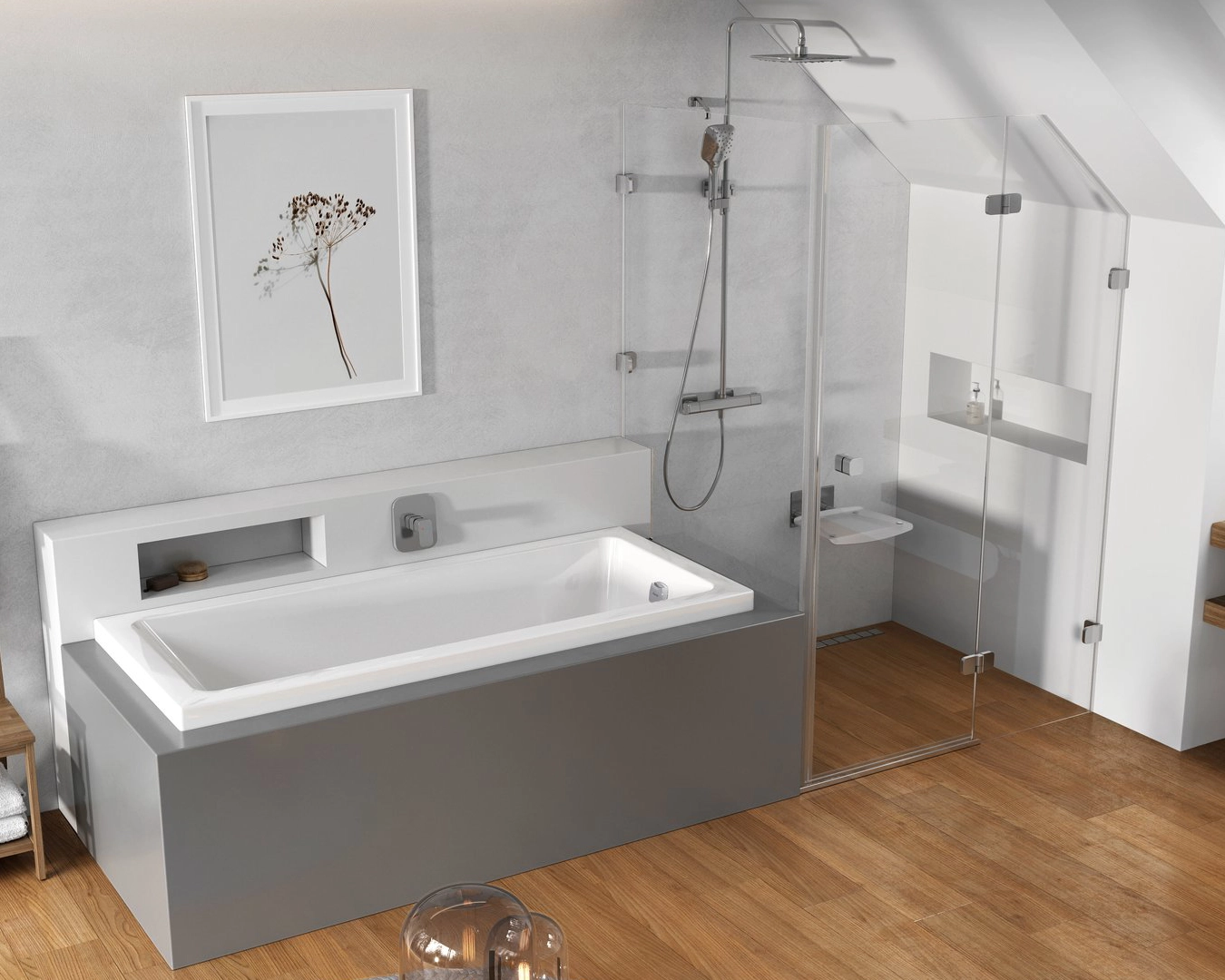 zuhanykivitel: négyzet alakú ABS fejzuhany 25 cm; kézi zuhany - 3 funkció; a fejzuhanyt oldalra is lehet forgatni